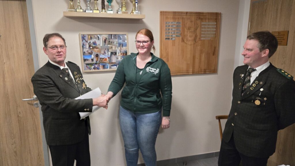 Damenmeisterschaft 2025 Sportleiter Markus Stocker, Damenmeisterin 2025 Sophie Zawinell und Schützenmeister Gerhard Bittl PlatzNameRinge1Zawinell, Sophie20782Ferber, Christine1308